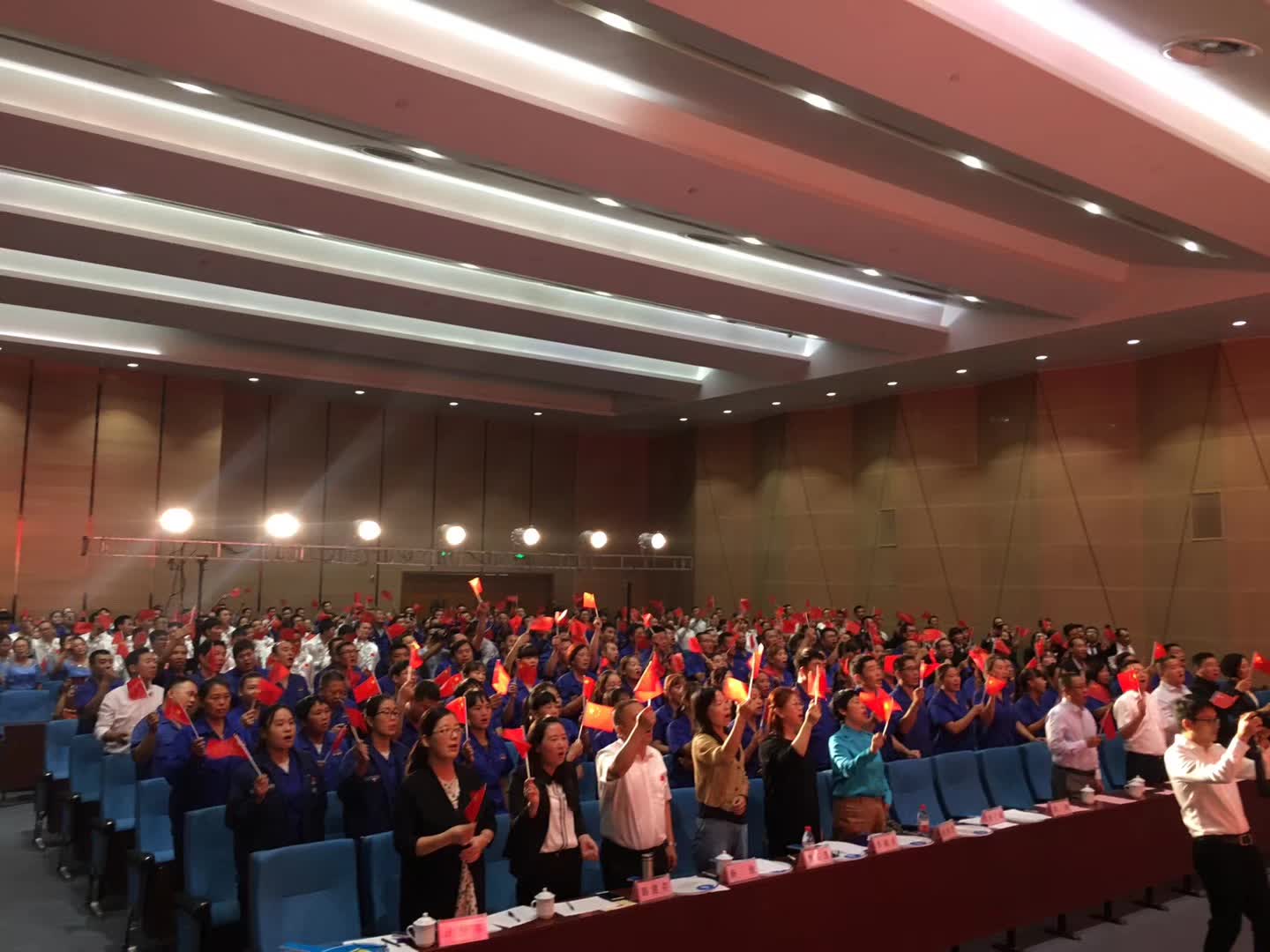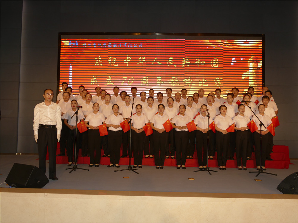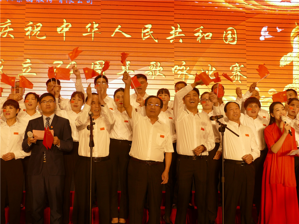 活動在全體合唱《歌唱祖國》的歌聲中達到高潮。集團公司主要領(lǐng)導(dǎo)登臺同全場員工舞動起鮮艷的五星紅旗,共同歌唱祖國,歌唱美好的新時代。